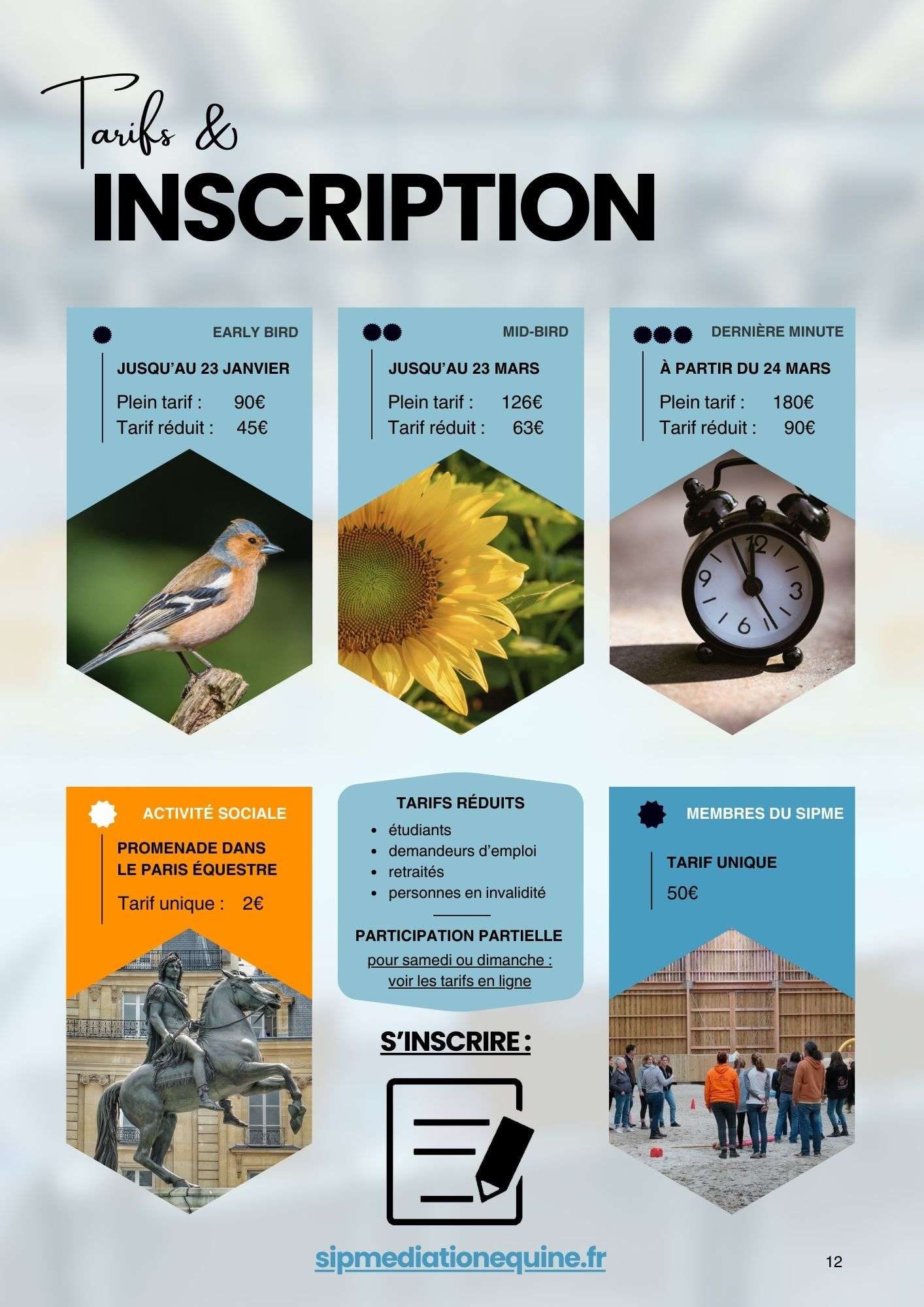 - Plein tarif : de 90€ à 180€ (selon la date d’inscription)