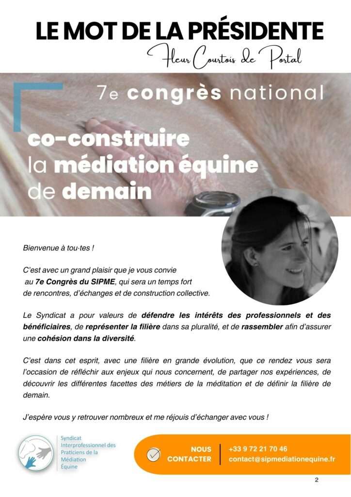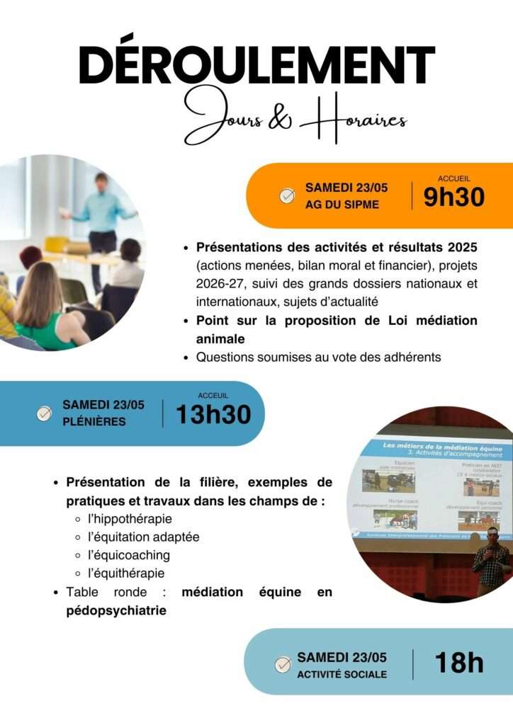 Le Syndicat Interprofessionnel des Praticiens de la Médiation Équine organise son 7e congrès national à Paris les samedi 23 et dimanche 24 mai 2026 à Paris.